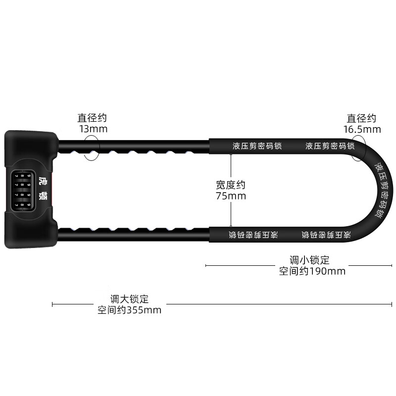 虎顿(HOTUN) 玻璃门锁 U型密码锁 双开门锁 办公室商铺门锁 密码锁 防撬锁具