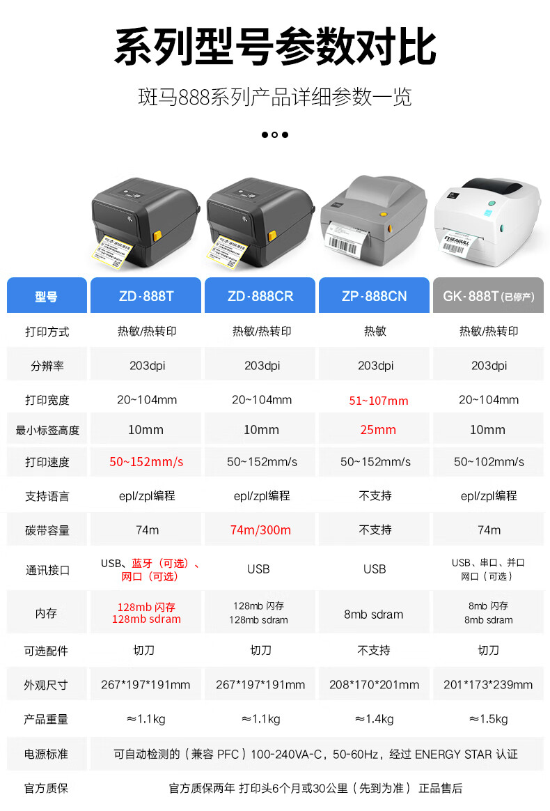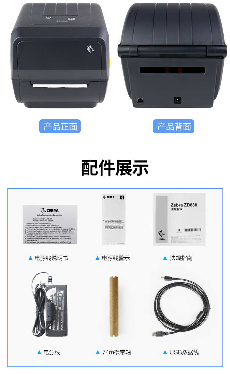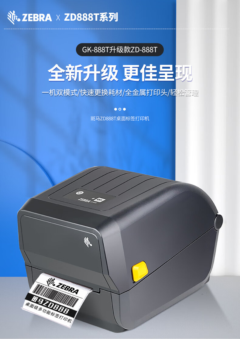 斑马(ZEBRA)gk888t升级款zd888t 标签机 固定资产热敏不干胶快递单电子面单条码标签打印机