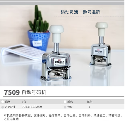 得力(deli)9位办公财务自动号码机/打码机 盖印清晰 财务用品 7509