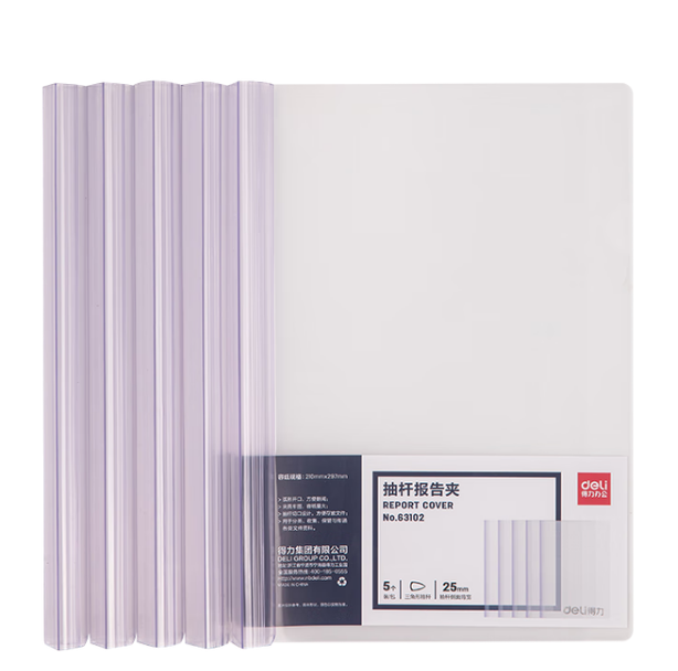 得力(deli)5只A4透明拉杆夹/抽杆夹/报告夹/文件夹 25mm大背宽简历报告夹