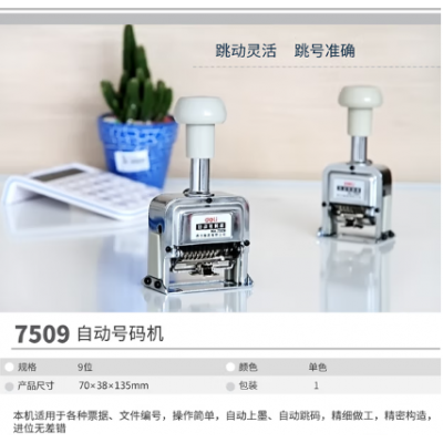 得力(deli)9位办公财务自动号码机/打码机 盖印清晰 财务用品 7509